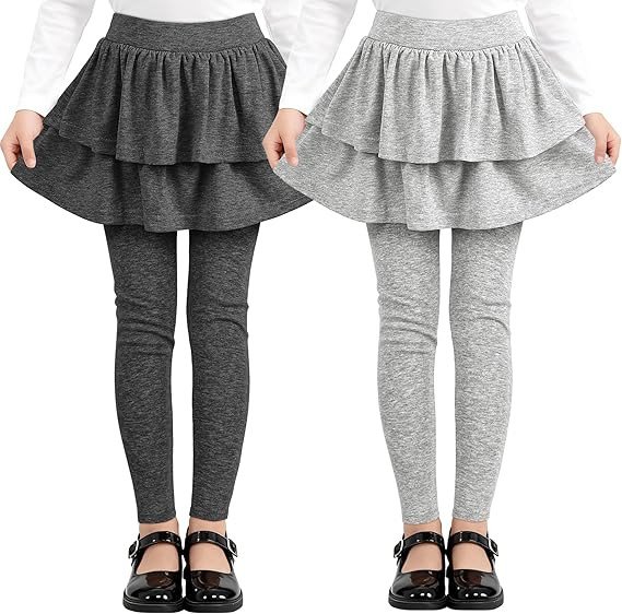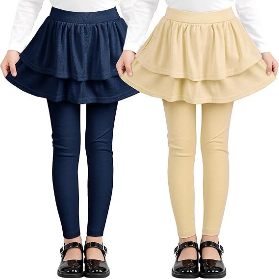 Resinta 2 Pack Girls Leggings Uniform Pants Legging with Skirts Stretch Warm Pant 4-14 Years