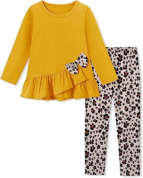 • Design: The toddler girl outfit features a long-sleeve top, charming ruffled hem and delicate bow detail, paired with matching floral-print pants. This girls clothes set creates a cute, coordinated look that’s both trendy and timeless