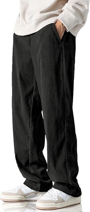 HOTake Men's Casual Corduroy Pants Elastic Waist Drawstring Baggy Sweatpants Loose Fit