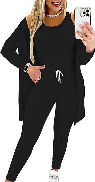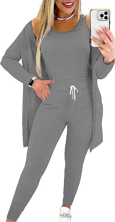 Design: 3 piece lounge sets for women include a crew neck tank top, a high waist pant with an adjustable drawstring, a cardigan, suitable for most types of body shape.