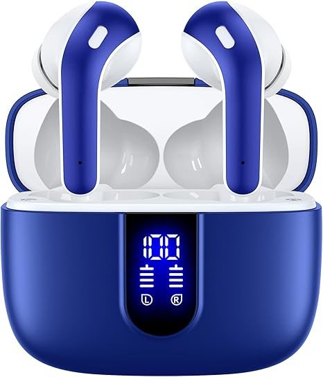 TAGRY Bluetooth Headphones True Wireless Earbuds 60H Playback LED Power Display Earphones with Wireless Charging Case IPX5 Waterproof in-Ear Ear buds with Mic for TV Smart Phone Laptop Computer Sports