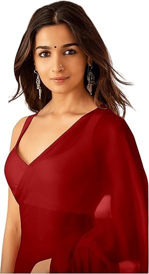 Sidhidata Women's Plain Pure Georgette Saree With Unstitched Blouse Piece (Rocky Aur Rani Ki Prem Kahani Alia Bhatt Saree)